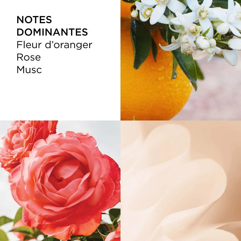 Tête : Melon, Pêche, Fleur d'oranger, Citron, Mandarine, Bergamote et Palissandre du Brésil