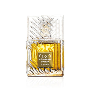 L’eau de parfum mixte Khamrah Qahwa par Lattafa s'ouvre sur des notes piquantes de gingembre qui s’élèvent en symphonie parfaite avec l’aromatique cardamome et la cannelle. Puis les accords se déplacent pour former une mélodie sucrée faite de pralines et de fruits confits qui laisse ressortir quelques notes de fleurs blanches. Le tout traversé par l’intensité du café Arabica, des fèves tonka, du musc animal et du benjoin. La vanille apporte le point sucré final qui parachève ce voyage inoubliable dans les méandres des sens olfactifs.